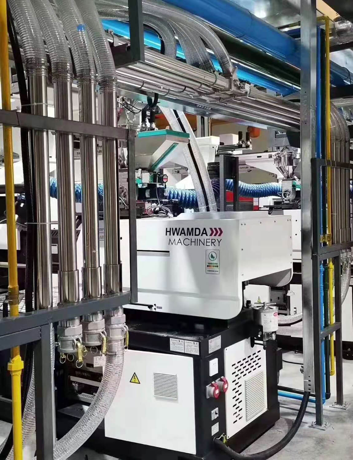 Besides production line planning, a-max also offers single machine option for customers, such as water-based/ oil-based temperature control equipment, water-based/ air-based cooling water machine/ oil cooling machine/ air cooling machine; multiple weighing color distribution/ resin distribution/ powder distribution; positive and negative pressure feeding/ powder feeding transmission equipment; wheel rotation/ double can dehumidifier; powder cleaning equipment; small-sized industrial RO equipment; energy-saving oxygen equipment for vehicle/ ship/ generator/ boiler items. Customers can choose those products for their best options.