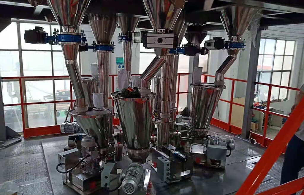 The system collects the cans that contains powders and dried raw materials caused by drying and heating processes as well as dehumidifier in the raw material room, so the entire plant can be much clean, beautiful, cooled, comfortable, management-friendly, manpower-saving, and management effective. Furthermore, our system integrates customers’ formula as well as mistake proofing.
